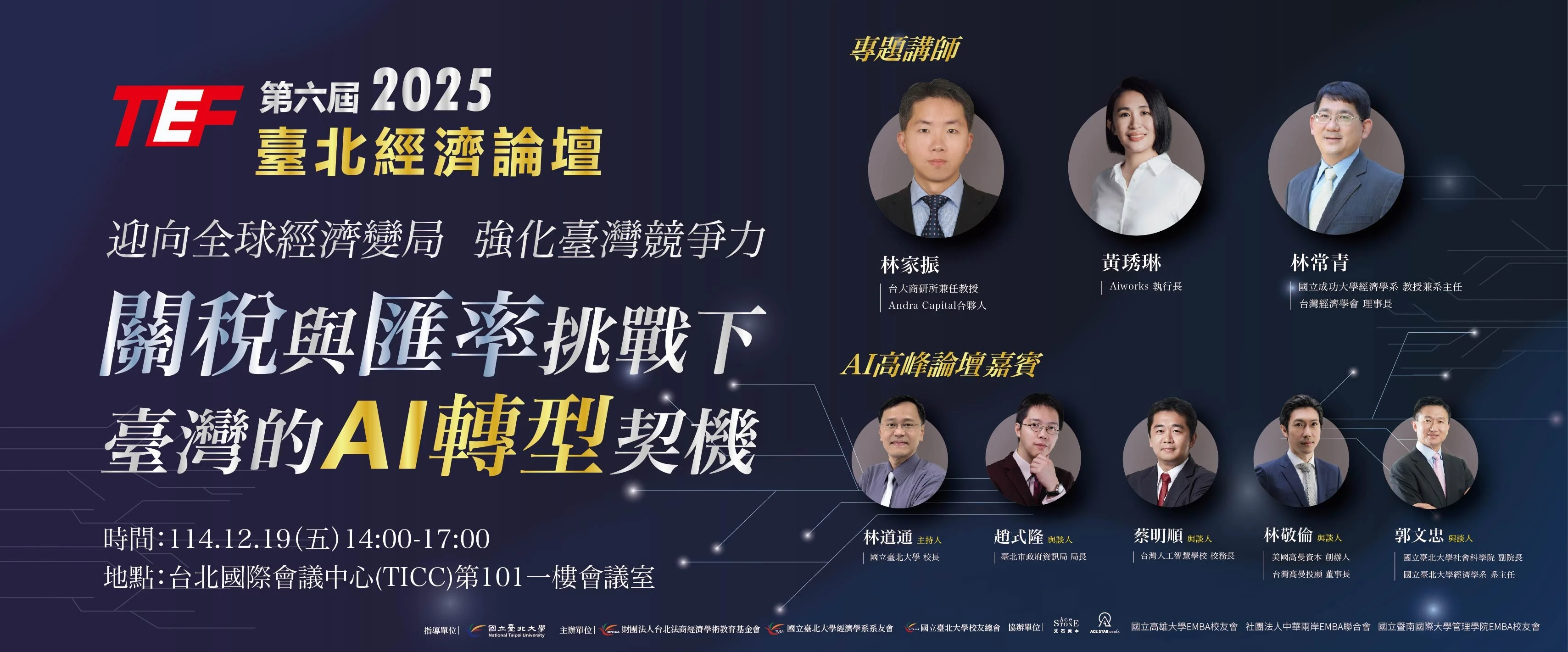 最新活動 LATEST EVENT 2025第六屆臺北經濟論壇|關稅與匯率挑戰下,臺灣的AI轉型契機!(報名填寫下方表格) 活動日期與時間 2025年12月19日(五)13:00–17:10 活動地點 TICC台北國際會議中心 一樓101會議室 報名期間 即日起至2025.12.18(四)24:00 (活動已結束)2025台北科技講座|AI雙引擎:推動企業轉型與行銷革新 活動日期與時間 2025.10.28 (二) 18:30–21:30 活動地點 兆基文教大樓9樓B室 報名期間 即日起至2025.10.24(五)24:00 了解更多 系友會消息 NEWS 查看所有消息 國立臺北大學經濟學系 114年度獎學金頒獎典禮圓滿舉行! 2025-12-07 國立臺北大學經濟學系於 114年12月2日(星期二)中午,假 社科大樓 8F07 院會議室 舉… 查看更多 → 🎓 114年度北大經濟傑出系友推薦開跑!邀請您一同尋找北大經濟之光 🌟 2025-11-09 親愛的經濟系學長姐您好: 為表彰本系系友於學術、產業、公務、藝文及社會服務等領域… 查看更多 → 【2025台北科技講座活動回顧】AI雙引擎:推動企業轉型與行銷革新 2025-10-29 在生成式 AI 席捲全球的浪潮下,人工智慧早已不只是技術話題,更是企業轉型與創新行… 查看更多 → 查看所有消息 關於我們 ABOUT 我們致力於連結所有優秀的系友,建構彼此聯繫的平台,藉此傳承寶貴的經驗,彼此共享資源與人脈,透過互相交流與啟發,一同成長不斷超越。我們誠摯地歡迎每一位系友加入,共同組建緊密的經濟系大家庭。 查看基金會資訊 查看團隊介紹 服務項目 SERVICE 交流與聯繫 產業與學術對話 校友服務與支持 人才培育與獎助 價值傳承與永續 了解更多 立即聯絡 CONTACT 會址 104臺北市中山區建國北路2段69號 通訊地址 106臺北市大安區敦化南路二段180號9樓之一 通訊電話 蘇秘書 0986-191-567 電子信箱 econalum@gm.ntpu.edu.tw 官方LINE @826wroqn 系友會FB facebook.com/NTPUTUEA 聯絡表單 Newsletter 姓名電話Email主旨訊息內容送出表單